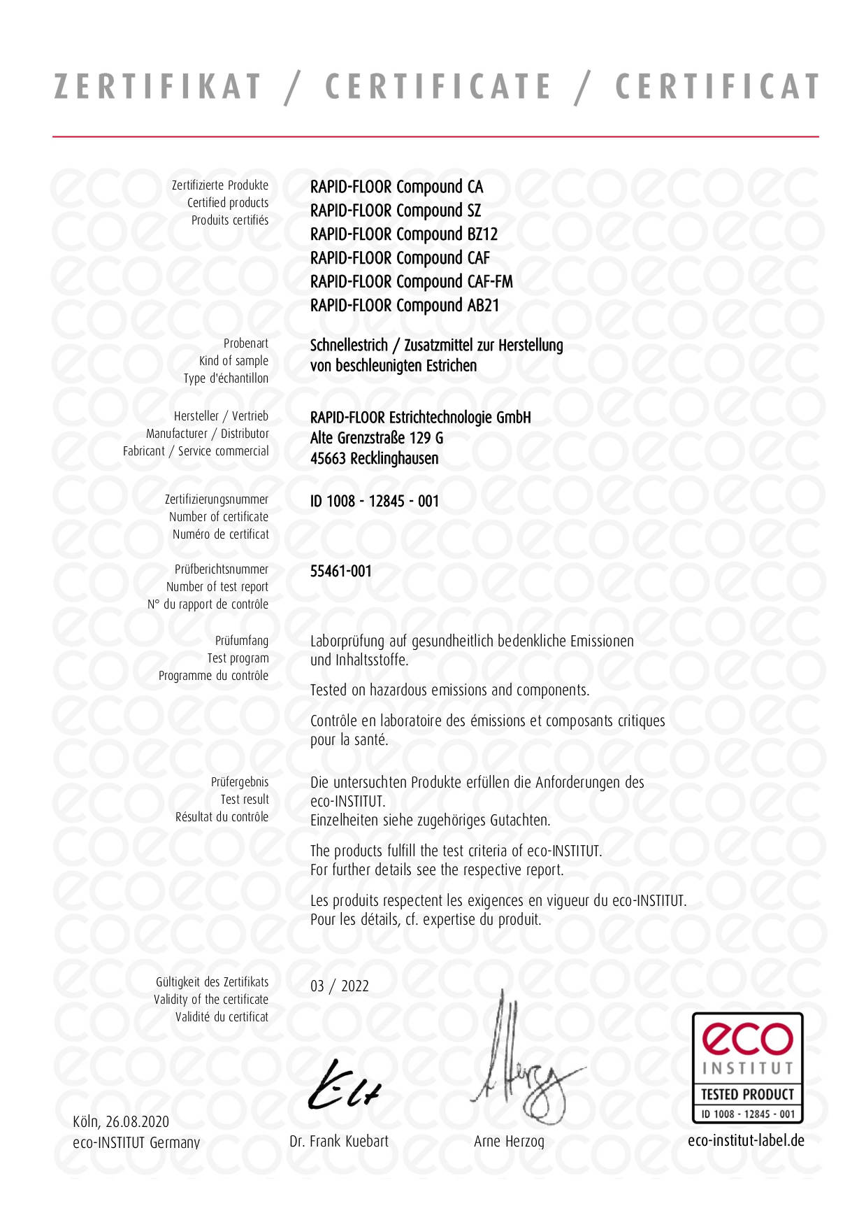 Unterlagen zu RAPID-FLOOR® Light Rapid